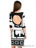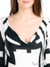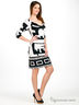 Платье с рукавами 3/4, декорированное контрастным геометрическим принтом. Сзади имеет овальный вырез в районе плеч. Выполнено из эластичного материала.
