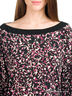 Короткое платье с защипами по бокам, широкие длинные рукава, украшено ярким принтом "сублимация" в фиолетовых, бежевых и черных тонах.
