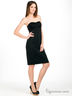 Однотонное платье без бретелек с отрезным лифом. Приталенного кроя, выполнено из эластичного материала.