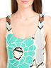 Длинное платье без рукавов на бретелях. По боковым швам на уровне талии собрано в складку. Декорировано цветочным и геометрическим принтом.