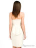 Коктельное короткое платье-футляр без бретелей с отрезной зоной лифа. Верх - топ с фигурным корсетом, низ - юбка-карандаш с воланом.