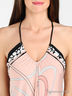 Коктейльное платье на тонких бретелях, декорировано ярким принтом, оригинальный топ на завязках, и на резинке, прилегающий силуэт.