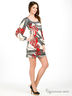 Коктейльное платье с глубоким круглым вырезом, длинными рукавами на манжетах, декорировано геометрическим и цветочным принтом. Выполнено из эластичного материала.