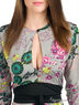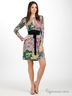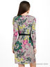 Коктельное платье с глубоким V-образным вырезом на пуговице, длинным рукавом, декорировано широким функциональным поясом и ярким цветочным принтом.