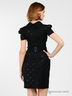 Элегантное платье с модным принтом горошек. Отложной воротник стойка, короткие рукава фонарики, застежка на молнию сзади. У пояса заложены односторонние складки, два прорезных кармана. К модели прилагается широкий пояс с цветком. Отличный вариант для особых случаев!