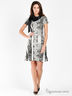 Детали: отложной атласный ворот с лентами, округлый вырез горловины, короткий рукав, принты