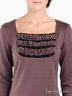 Детали: фигурный вырез; рукав 3/4; на полочке вставка с оборками и кружевом