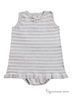 Нежный комплект в полоску из 100% хлопковой пряжи , состоящий из платья и трусиков. Платье без рукавов с круглым вырезом горловины, сзади застежка на пуговицы, низ украшен рюшей. Трусики на эластичной резинке по краям. Прекрасный вариант для повседневной носки.