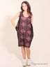 Оригинальное платье свободного силуэта с принтом полоска продублировано ажурным гипюром. Округлый вырез горловины, два прорезных кармана спереди.