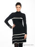 Детали: застежка на две пуговицы на спине, ворот-стойка, полочка и низ изделия декорированы бантами, низ изделия дополнен рюшами в рубчик