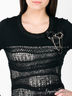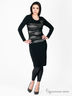 Прилегающий силуэт, средняя длина. Длинный прямой рукав с манжетой. Округлый вырез горловины. Полочка декорирована вставкой из белой ткани, с нашитой на нее черной сеткой. В дополнение прилагается брошь.