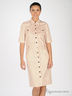 Платье приталенное. Отложной воротник. Короткий рукав. Шлёвки на талии. Застежка - пуговицы. На груди имитация 2 карманов. 2 втачных набедренных кармана.