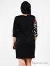 Оригинальное платье слегка приталенного силуэта. Выполнено из эластичного материала. V-образный вырез горловины. Короткие рукава 3/4. Спереди оригинальная застежка на молнию. Модный и яркий узор.