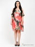 Оригинальное платье свободного силуэта. Выполнено из гладкого шелковистого материала. Округлый вырез горловины. Короткие рукава с разрезами. Полочка украшена накладным кармашком. Стильный узор.