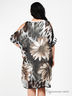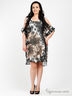 Оригинальное платье свободного силуэта. Выполнено из гладкого шелковистого материала. Округлый вырез горловины. Короткие рукава с разрезами. Полочка украшена накладным кармашком. Стильный узор.