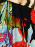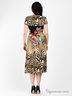 Повседневное платье расклешенного силуэта. Выполнено из приятного на ощупь эластичного материала с объемной прострочкой. V-образный вырез горловины. Короткие рукава. Спереди оригинальная драпировка. Стильный яркий узор.