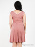Повседневное платье расклешенного силуэта. Выполнено из эластичного материала. V-образный вырез горловины. Короткие рукава. Оригинальный узор в горошек.