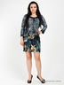 Оригинальное платье прямого силуэта. Выполнено из приятного на ощупь материала. Округлый вырез горловины. Укороченные цельнокроеные рукава 7/8. Спереди модель украшена золотистыми пуговицами и декоративными кармашками. Стильный и модный принт.