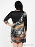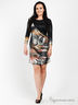 Оригинальное платье приталенного силуэта. Округлый вырез горловины. Укороченные рукава 3/4. Сбоку модель украшена золотистыми пуговицами. Оригинальный узор и принт.
