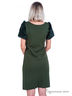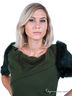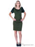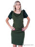 Модель прямого, слегка приталенного кроя с рельефным швом на груди и драпированной горловиной.