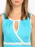 Очаровательное платье из нежного шелковистого трикотажа. Лиф выполнен с запахом, на груди драпировка в виде мягких складок. Линия талии завышена. Окантовка выреза горловины, пройм, низа изделия и декоративный поясок на талии выполнены из ткани контрастного цвета.