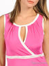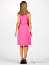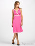 Очаровательное платье из нежного шелковистого трикотажа. Лиф выполнен с запахом, на груди драпировка в виде мягких складок. Линия талии завышена. Окантовка выреза горловины, пройм, низа изделия и декоративный поясок на талии выполнены из ткани контрастного цвета.
