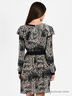Детали: округлый вырез горловины, длинный рукав, ворот и манжеты - трикотажные резинки, по линии талии вставлена резинка, пришиты шлевки, в комплекте поясок, оборка