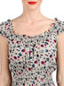 Детали: широкий круглый вырез и талия дополнены многорядной резинкой; оригинальный принт