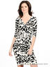 Детали: отрезной лиф; V-образный вырез; рукав 3/4; оригинальный принт