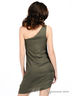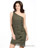 Детали: одна бретеля; застегивается на молнию сбоку; декорировано оригинальными прорезями и бисером