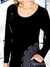 Детали: глубокий круглый вырез горловины, длинные узкие рукава, небольшой накладной кармашек, оригинальный крой.