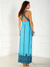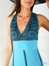 Детали: V-образный вырез горловины, лямки перекрещиваются на спинке, высокий отрезной пояс, принты