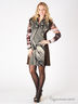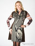 Детали: V-образный вырез горловины с небольшой стойкой, длинные рукава с небольшой трикотажной манжетой, небольшие вставки из отделочной ткани придают эффект двойки.