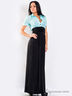 Платье с короткими рукавами и отложным воротником. Длина "макси". Модель приталенного кроя подчеркивает достоинства фигуры. Спереди - частичная застежка на пуговицы. Отличный вариант на каждый день.