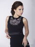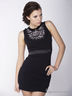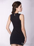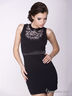Элегантное короткое черное платье. Атласная вставка на поясе. Черное жабо на белом фоне.