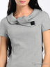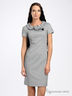 Платье приталенного кроя из плотного стейча. Круглый вырез горловины с отложным воротником и декоративной пуговицей. Короткие рукава.