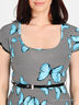 Детали: округлый вырез горловины, короткие рукава, талия подчеркнута поясом