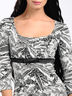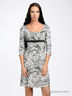 Платье прямого кроя из тонкого трикотажа. Глубокий круглый вырез горловины. Лента под грудью. Рукав 3/4.