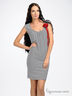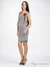 Трикотажное платье зауженного книзу кроя облегает бедра. Глубокий круглый вырез горловины слегка присборен. Короткие рукава. Платье украшено цветком с ленточками.