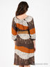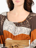 Детали: округлый вырез горловины, рукав-реглан присборен на резинку, отрезной лиф присборен в мелкие складки, замшевый пояс