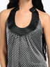 Атласное платье расклешенного кроя. Отрезная горловина с глубоким вырезом.