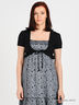 Детали: вырез "карэ", эффект двойки, полочка присобрана на многорядные резинки, короткие рукава с эластичными вставками