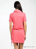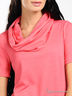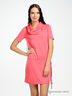 Яркое трикотажное платье прямого кроя. Ворот-хомут. Короткие рукава. На линии бедер двойная кулиска.
