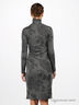 Легкое трикотажное платье в стильном сером цвете с оригинальным принтом. Воротник стойка. Длинные рукава. Приталенный силуэт прекрасно облегает фигуру. Строгое и элегантное, прекрасно подойдет для офиса и деловых переговоров. А дополненное яркими аксессуарами станет отличным образом для вечера.