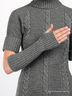 Элегантное вязанное платье, уютное и стильное. Облегающий силуэт прекрасно подчеркнет фигуру. Воротник хомут. Короткие рукава реглан. Особая изюминка этого платья - нарукавники в цвет с прорезью для большого пальца. Теплое полушерстяное платье - идеальный вариант для холодной, промозглой погоды, оно сохранит как тепло, так и Вашу женственность и стиль.
