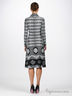 Легкое трикотажное платье в стильном сером цвете с оригинальным принтом. Вырез "качели" выделяет линию шеи и грудь. Длинные рукава. Приталенный силуэт прекрасно облегает фигуру. Строгое и элегантное, прекрасно подойдет для офиса и деловых переговоров. А дополненное яркими аксессуарами станет отличным образом для вечера.