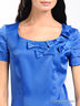 Платье приталенного кроя из атласной ткани. Круглый вырез горловины. Декоративная складка на рукава и по низу изделия. Застегивается на незаметную молнию сзади. Горловина декорирована бантами.