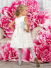 Праздничное платье для девочек. Модель без рукавов классического кроя, с завышенной линией талии, из плотной ткани и органзы, застегивается на молнию и пуговицу. Лиф с круглым вырезом по горловине, по краям отделан атласной лентой. Многослойная юбка длиной три четверти сверху украшена лепестками из органзы, расположенных внахлест. Подъюбник из натурального хлопчатобумажного полотна дополнен оборками из фатиновой сетки - для дополнительно объема. Платье декорировано цветочной вышивкой. Линия талии украшена крупным бутоном розы из атласа. Пояс, вшитый в боковую деталь изделия, позволяет легко регулировать посадку по фигуре.