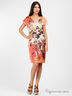 Платье прямого покроя с короткими рукавами и v-образным вырезом горловины. Изделие декорировано контрастным принтом. Отличный вариант на каждый день.