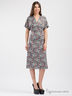 Платье приталенного покроя с рукавами 3/4 и v-образным вырезом горловины. Модель выполнена из принтованной ткани контрастной расцветки. Отличный вариант на каждый день.